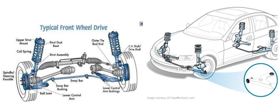(ຮູບພາບແລະແຜນວາດຊີ້ບອກຕໍາແຫນ່ງ bushing ທົ່ວໄປໃນຮູບແບບ suspension.)
