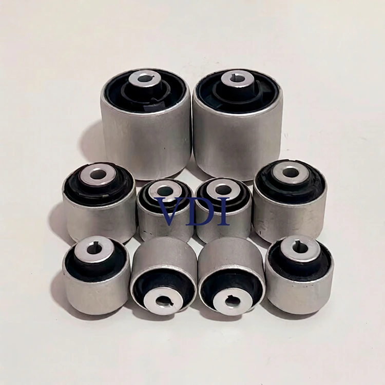 ການຄວບຄຸມພຸ່ມໄມ້ຂອງແຂນມີສ່ວນສໍາຄັນໃນການຕິດຕັ້ງລະບົບລະງັບລົດ. ໂຮງງານສ່ວນຫຼາຍແມ່ນເຮັດດ້ວຍຢາງພາລາ, ໃນຂະນະທີ່ທາງເລືອກທີ່ມີປະສິດທິພາບສູງມັກຈະໃຊ້ສານປະສົມຢາງທີ່ປັບປຸງ - ຫຼືໄປຫາ polyurethane. ພວກມັນເຫມາະກັບບ່ອນທີ່ແຂນຄວບຄຸມຕິດກັບກອບຍ່ອຍຫຼືຕົວຖັງ, ຊ່ວຍດູດຜົນກະທົບຂອງຖະຫນົນ, ຫຼຸດຜ່ອນການສັ່ນສະເທືອນ, ແລະປ່ອຍໃຫ້ແຂນເຄື່ອນຍ້າຍໄດ້ຢ່າງເສລີໂດຍບໍ່ສູນເສຍການຄວບຄຸມ. ທັງຫມົດນີ້ເຮັດວຽກຮ່ວມກັນເພື່ອຮັກສາລໍ້ທີ່ຖືກຕ້ອງແລະລົດຄົງທີ່ຢູ່ໃນຖະຫນົນຫົນທາງ.