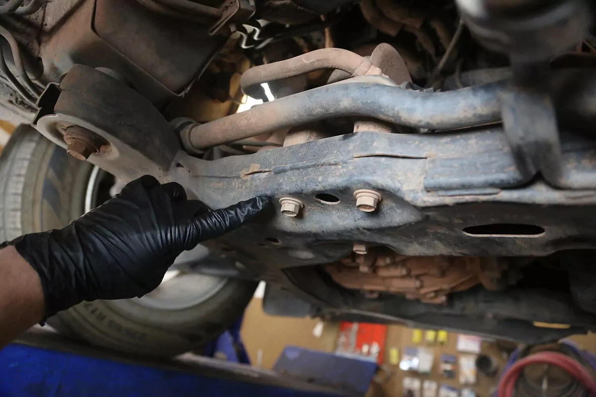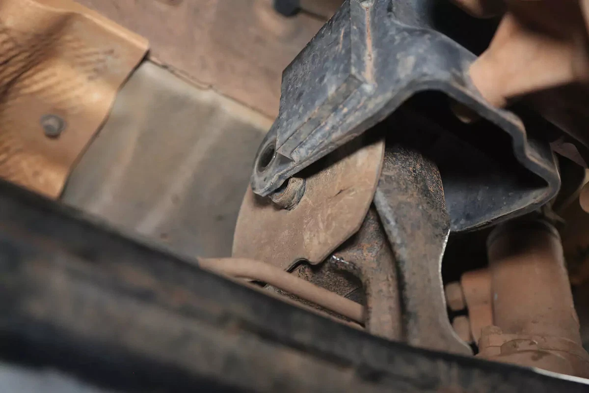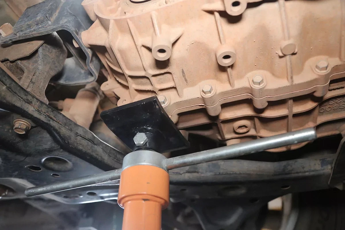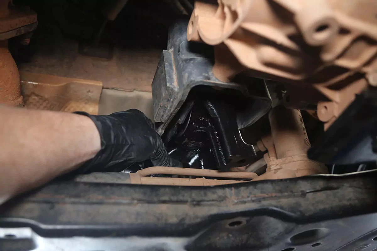 ໃນຍານພາຫະນະການສາທິດ FWD ຂອງພວກເຮົາ, mount ລະບົບສາຍສົ່ງແມ່ນຕັ້ງຢູ່ທາງຫລັງຂອງລະບົບສາຍສົ່ງໃນ subframe ທາງຫນ້າ. ຖ້າທ່ານມີລົດ AWD, 4WD, ຫຼື RWD, mount ອາດຈະຢູ່ດ້ານຫລັງຂອງລະບົບສາຍສົ່ງ, ສູນກາງເກືອບໂດຍກົງພາຍໃຕ້ລົດ, ລະຫວ່າງລະບົບສາຍສົ່ງແລະ crossmember.