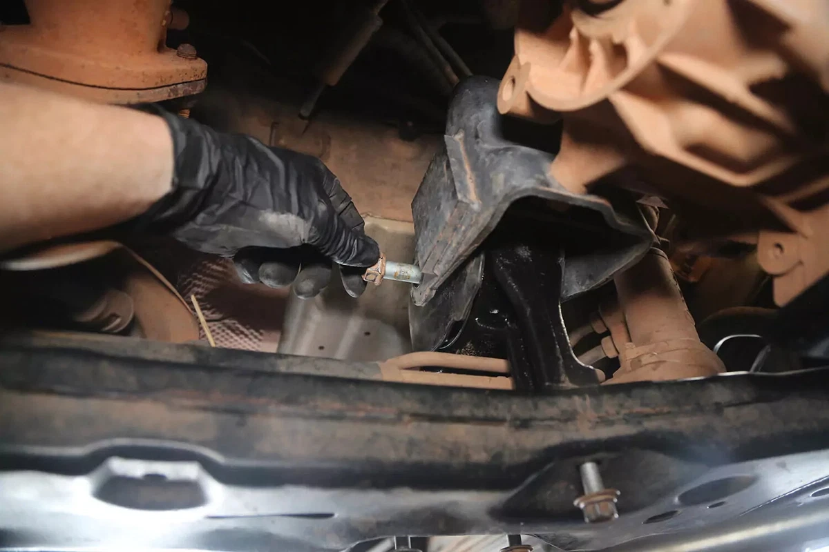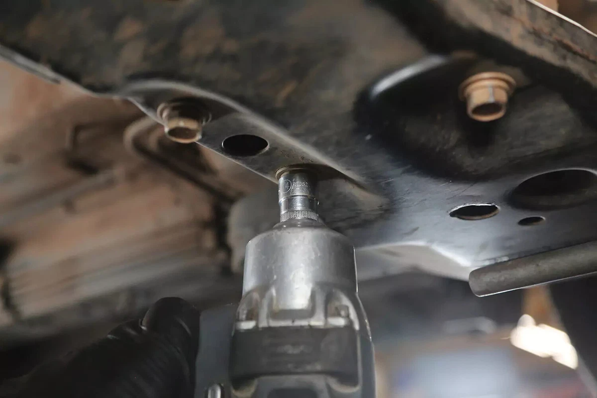 ສໍາລັບຍານພາຫະນະການສາທິດຂອງພວກເຮົາ, mount ມີສາມ bolts ສຸດ subframe ແລະຫນຶ່ງ bolt ກັບລະບົບສາຍສົ່ງ. bolts ອີກສີ່ອັນຕິດຕົວຍຶດສາຍສົ່ງກັບສາຍສົ່ງ. ໃນຍານພາຫະນະສ່ວນໃຫຍ່, ເຫຼົ່ານີ້ບໍ່ຈໍາເປັນຕ້ອງເອົາອອກ.