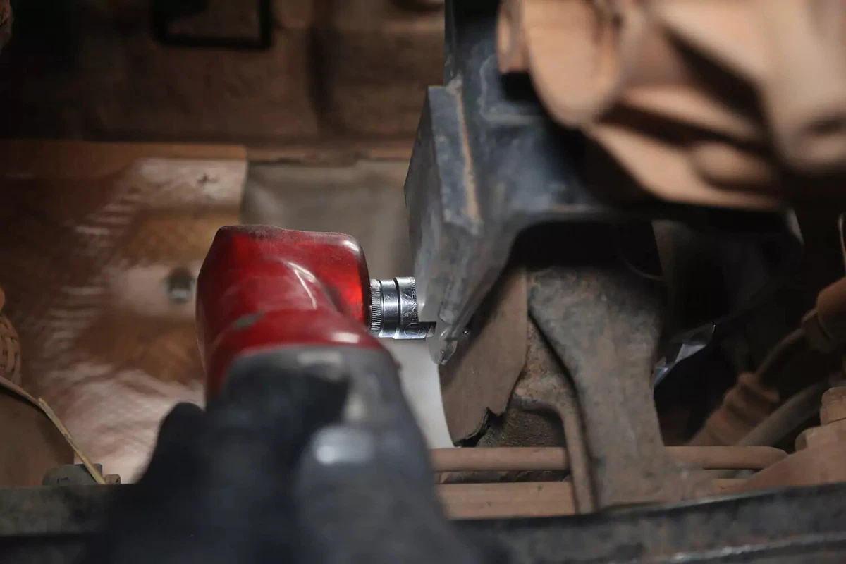 ຍານພາຫານະສາທິດຂອງພວກເຮົາມີລູກປືນຂ້າມ, ເຊິ່ງຖືກຖອດອອກໂດຍໃຊ້ wrench ຢູ່ດ້ານໜຶ່ງ ແລະ ເຕົ້າສຽບຢູ່ອີກດ້ານໜຶ່ງ. ເຫຼົ່ານີ້ສາມາດຍາກທີ່ຈະເອົາອອກໃນໄຕມາດທີ່ໃກ້ຊິດ. ໃຊ້ແຖບເບກເກີ, ປະແຈຜົນກະທົບ, ຫຼືແຖບ cheater ເພື່ອໃຫ້ໄດ້ແຮງດັນທີ່ຕ້ອງການ.